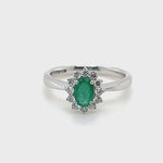 Oval 0.45ct Emerald 0.20ct Diamond Cluster Ring 18k White Gold