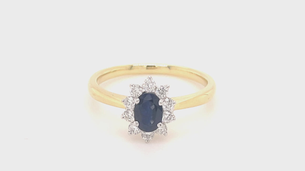 Oval 0.50ct Blue Sapphire 0.30ct Diamond Cluster Ring 18k Yellow Gold