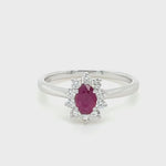 Oval 0.50ct Ruby 0.30ct Diamond Cluster Ring 18k White Gold