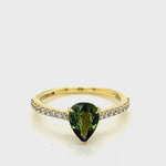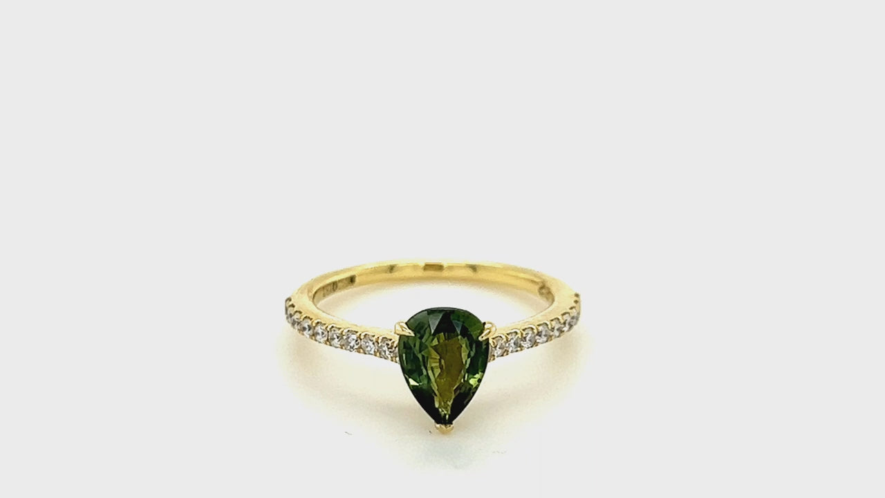 Pear Green Sapphire and Diamond Engagement Ring 1.50ct 18k Yellow Gold