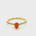 Pear Orange Sapphire and Diamond Engagement Ring 0.70ct in 18k Yellow Gold