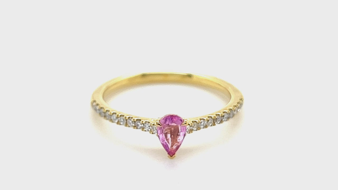 Pear Pink Sapphire and Diamond Engagement Ring 0.70ct in 18k Yellow Gold