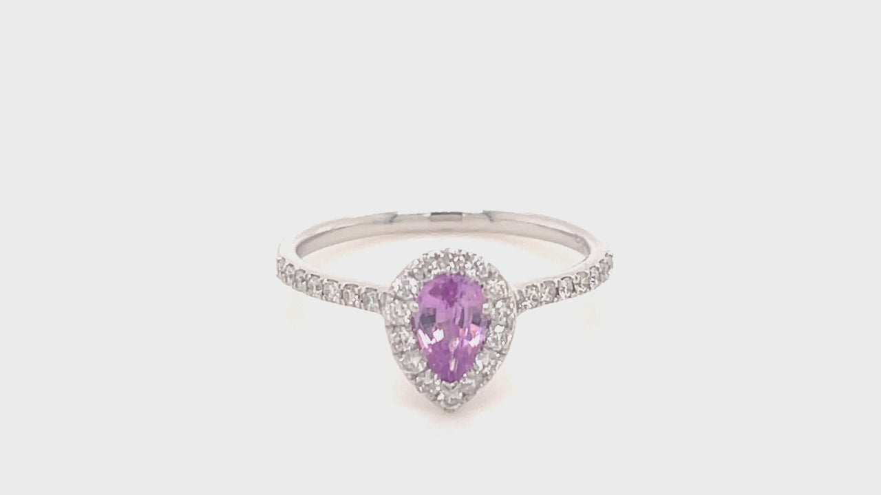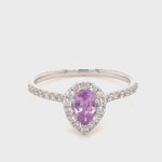 Pear Pink Sapphire & Diamond 0.80ct Halo Ring in Platinum - All Diamond