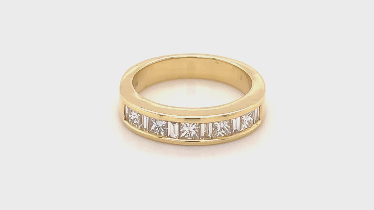 Princess & Baguette Diamond Half Eternity Ring 1.10ct 18k Yellow Gold