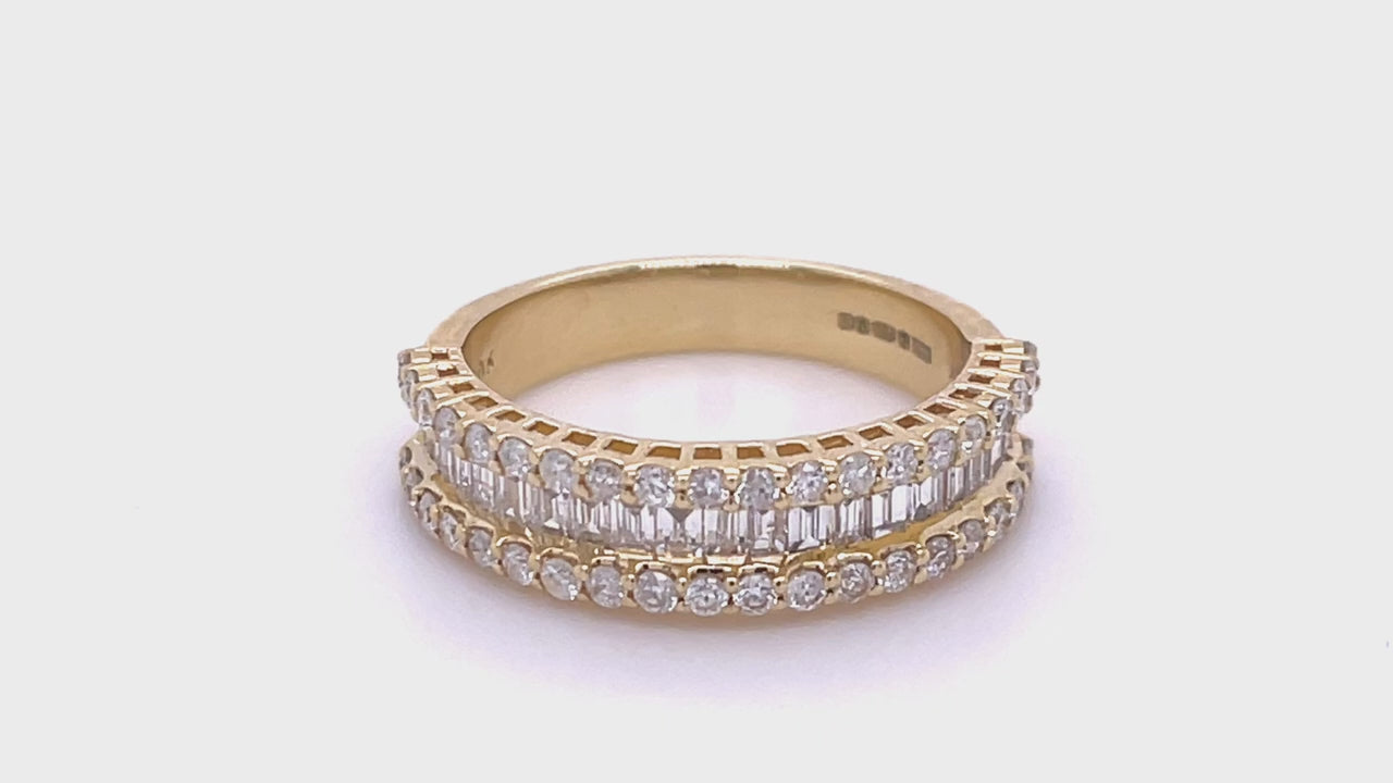Round & Baguette Diamond Half Eternity Ring 1.50ct G/SI 18k Yellow Gold