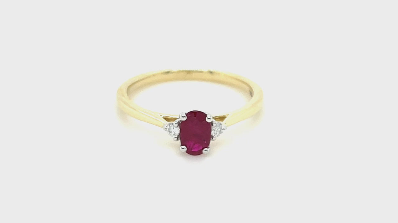 Ruby 0.30ct Diamond 0.05ct Three Stone Ring 9k Yellow Gold