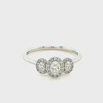 Three Stone Oval Diamond Cluster Engagement Ring 0.45ct G/SI 18k White Gold